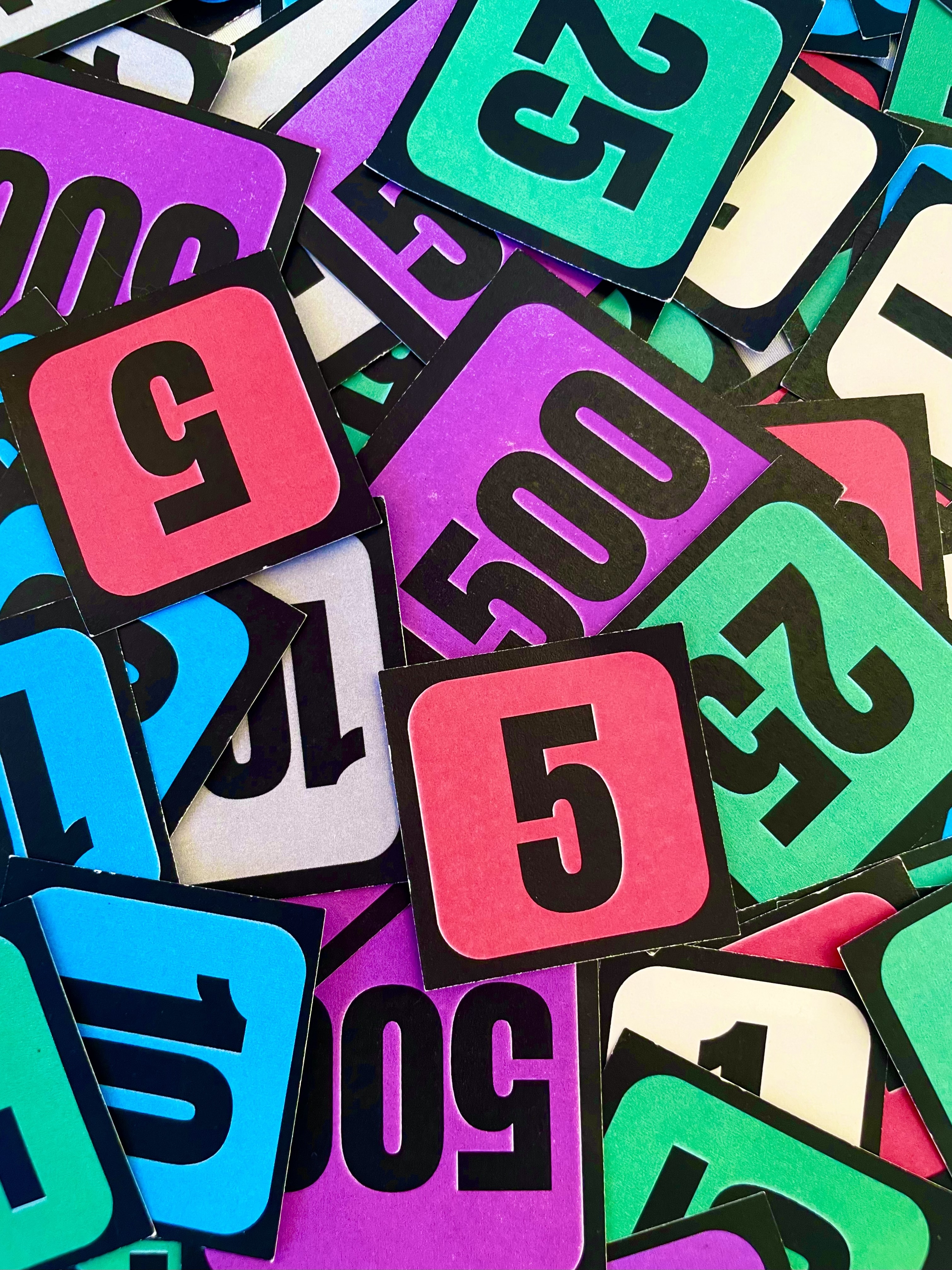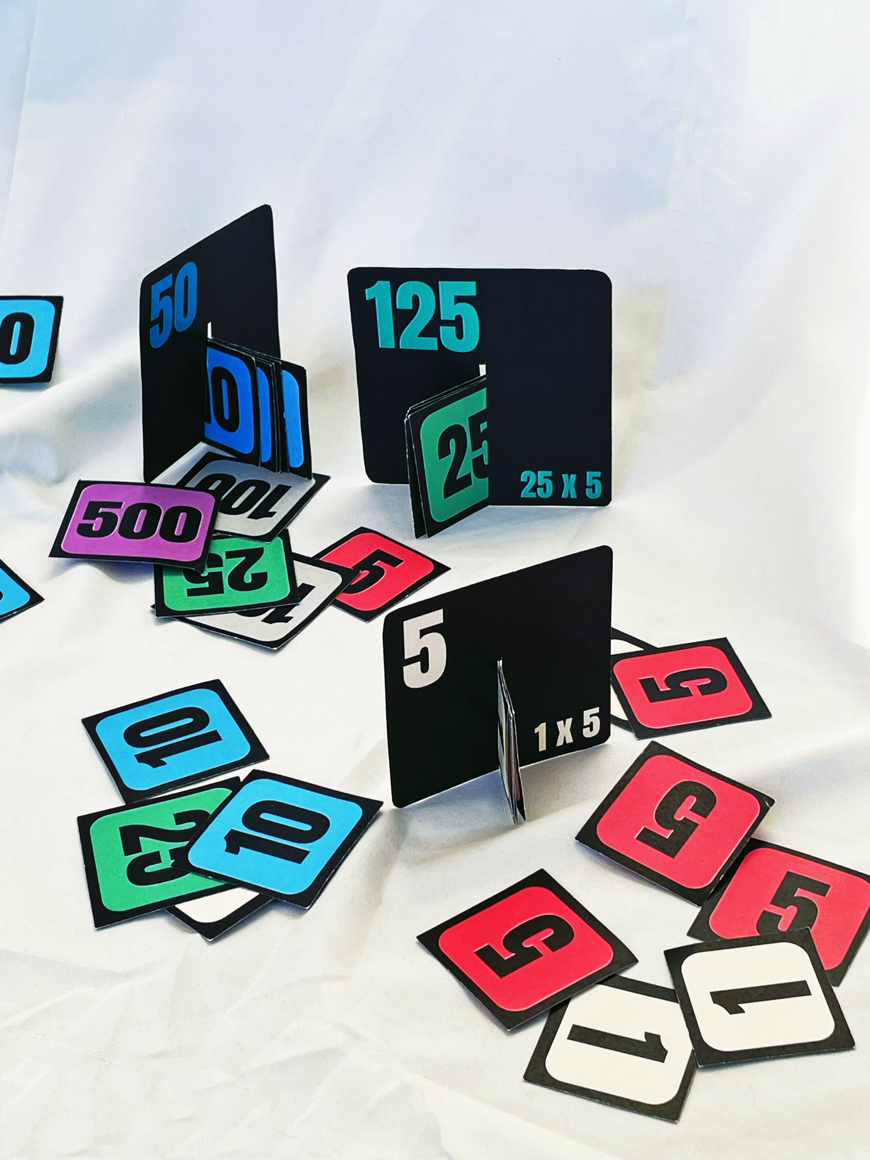 Large, high-contrast numbers so players don’t need to memorize denominations.